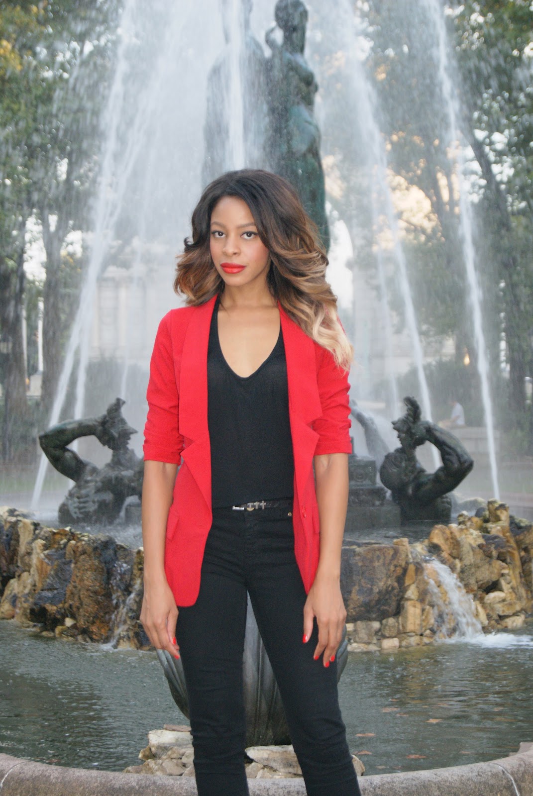 Although loss is tough, being in mourning is NO excuse to look slatternly in public. I had to pull it together. I decided to rely on the basics: skinnies, pumps, blazer. There was no will left in me to go through my jewelry, so I perked up the all black/no accessory look by matching my lips and blazer to my nails. Though simple, my fit managed to be just cute enough for the date, shop, etc. on my agenda. Hopefully, I can restore my music. Because baby, I am so lost without you.